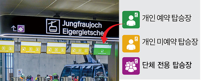 현지 역에서 좌석예약 후 예약증<사진1>을 지참하시고 그린델발트 터미널, 아이거글렛쳐, 융프라우요흐 역 개인 예약자 탑승장