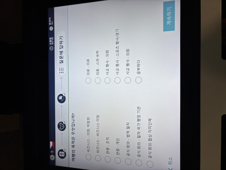 여행의 목적은 일반 관광객 기준 관광 - 개인으로 지정후 계속하기 탭합니다.
