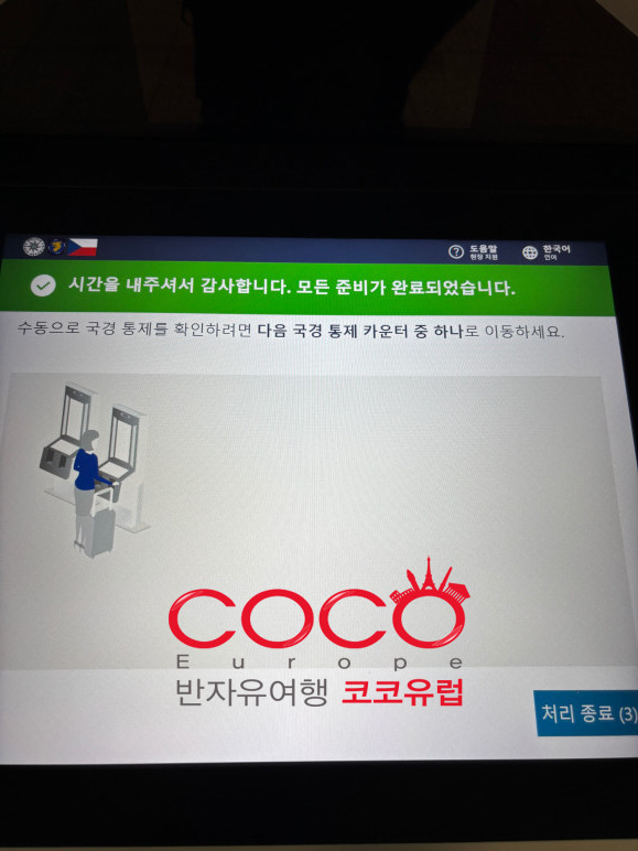 유럽 입국을 위한 유럽 공항 내 EES 등록이 완료됩니다.